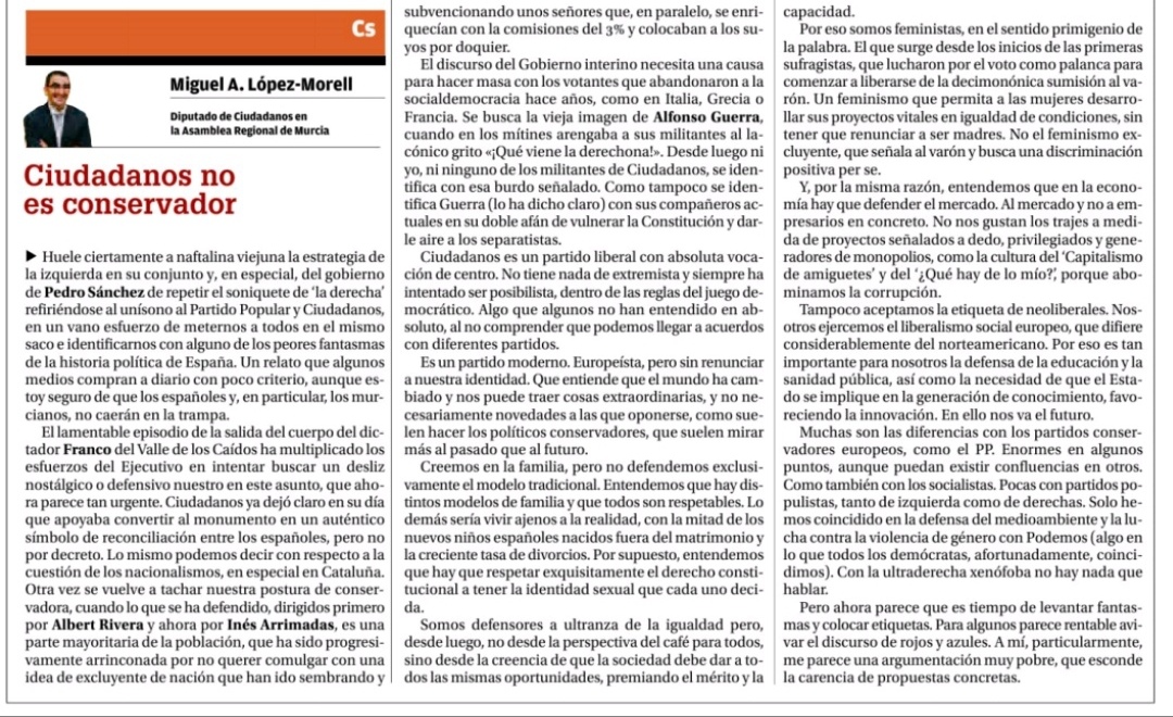 CIUDADANOS NO ES CONSERVADOR (La Opinión, 3.9.2018)