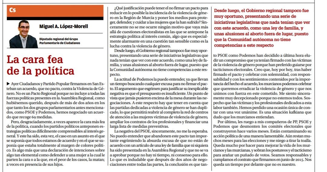 Mi nombre es Miguel A. López-Morell y desde Junio de 2015 soy diputado autómico por Ciudadanos en la Asamblea de Murcia.