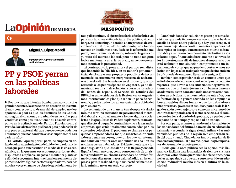 PP Y PSOE YERRAN EN LAS POLÍTICAS LABORALES (La Opinión, 11.2.2019)