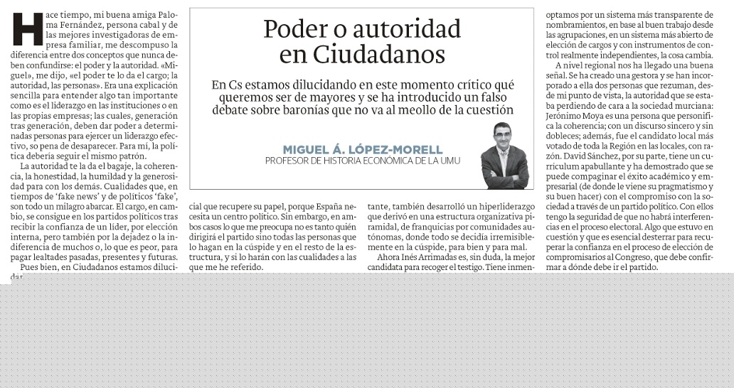 PODER O AUTORIDAD EN CIUDADANOS (La Verdad, 8.2.2020)