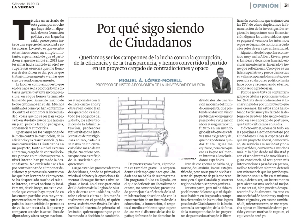 POR QUÉ SIGO SIENDO DE CIUDADANOS (La Verdad, 19.10.2019)