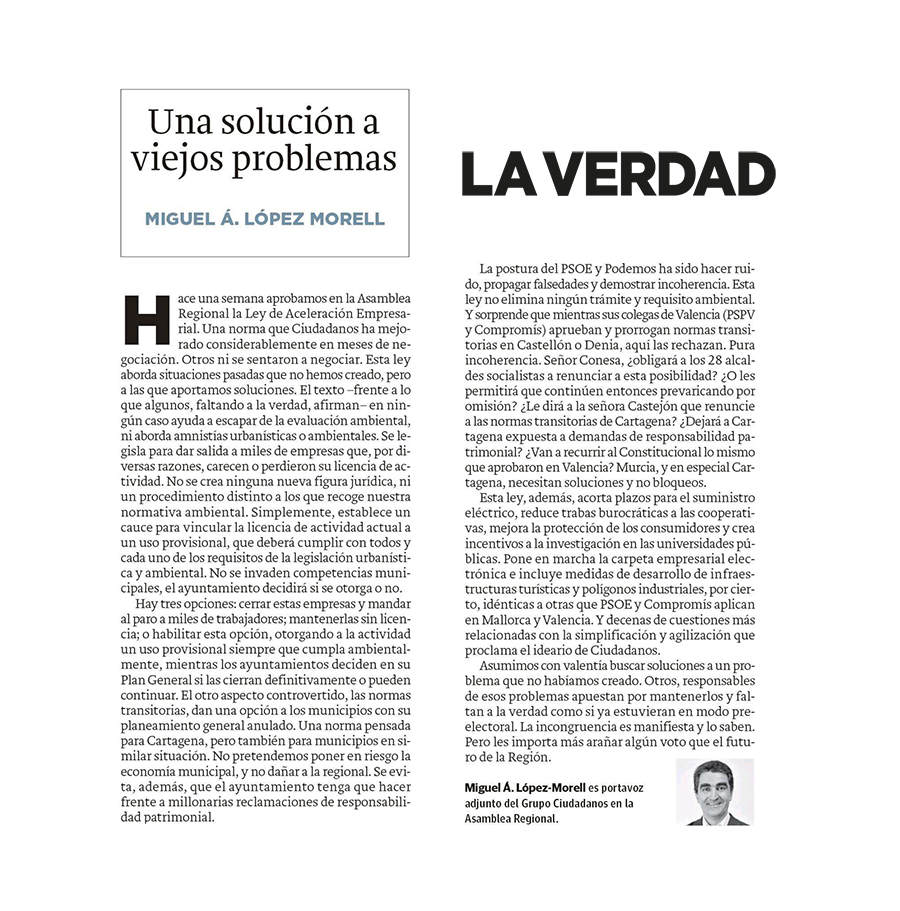 UNA SOLUCIÓN A VIEJOS PROBLEMAS (La Verdad, 25.10.2018)